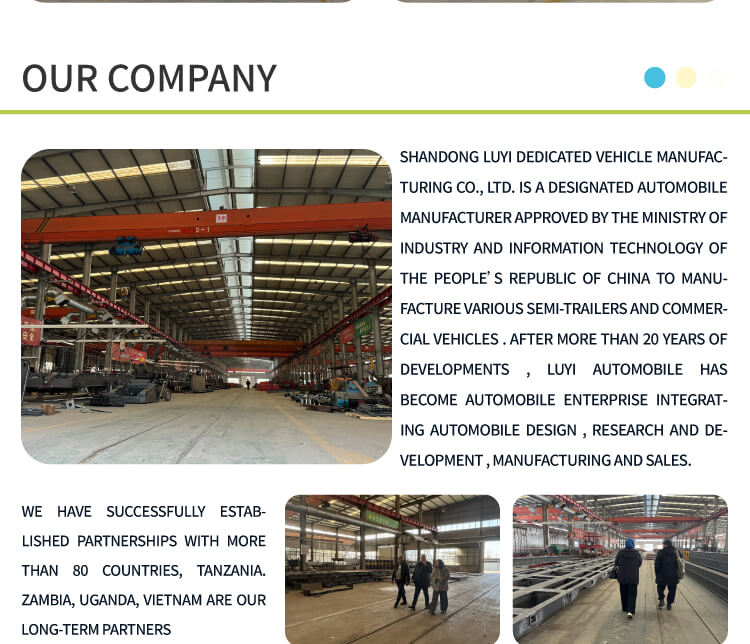 Il semirimorchio ribassato a collo di cigno da 20 piedi a 2 assi di LUYI, originario dello Shandong, in Cina, è una soluzione ad alte prestazioni per il trasporto di autocarri pesanti. Con un carico utile massimo di 120 tonnellate e un peso massimo del carico di 40 tonnellate, eccelle nella gestione delle esigenze di carichi pesanti.