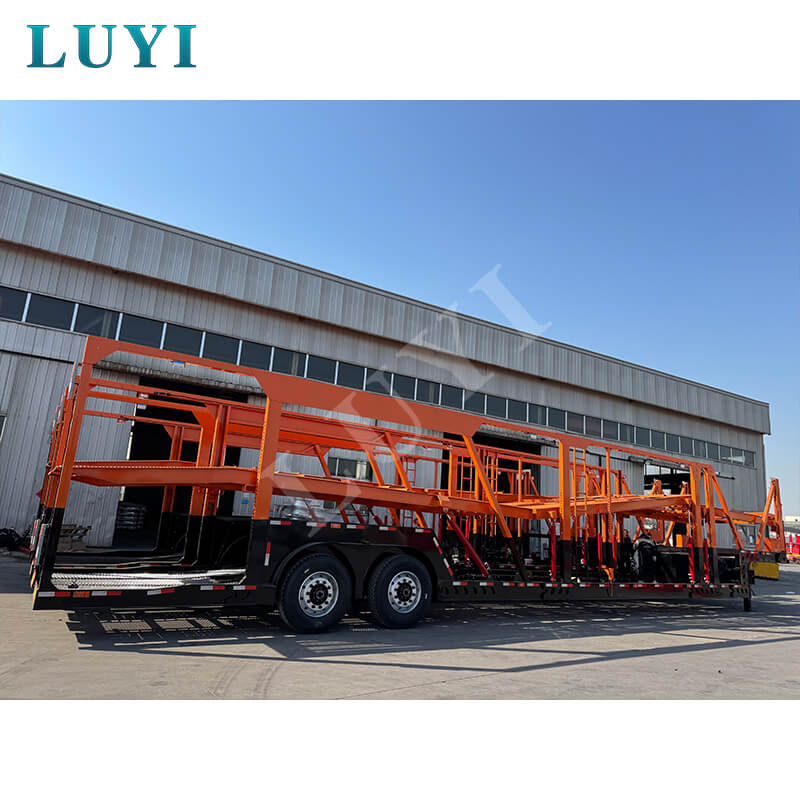 Semirimorchio da trasporto veicoli a 2 assi con 8 posti auto. Il cassone è realizzato in acciaio ad alta resistenza, con una struttura portante stabile, ed è dotato di un sistema di sollevamento idraulico, che può regolare in modo flessibile l'altezza dei posti auto, adatto al carico di vari modelli. Può trasportare in modo efficiente 8 veicoli alla volta, aiutando il settore della logistica automobilistica a migliorare l'efficienza dei trasporti.