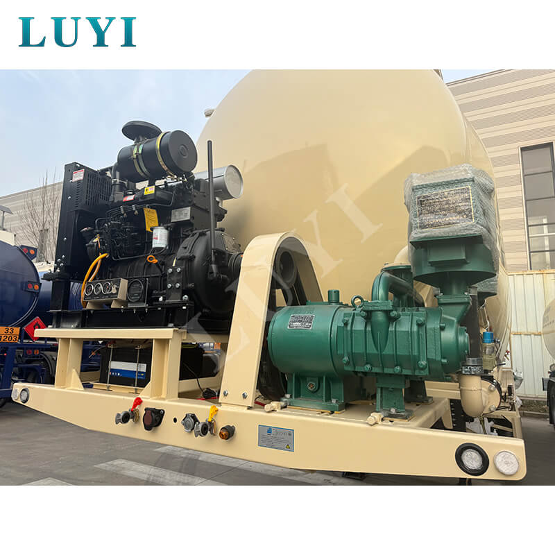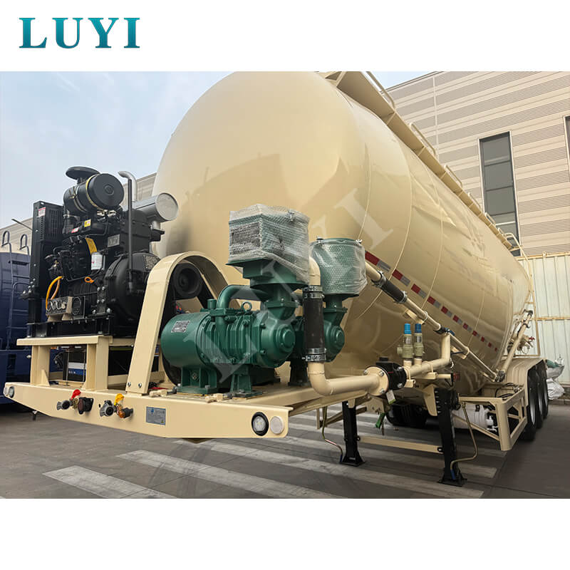 Il semirimorchio cisterna di cemento LUYI a 3 assi da 35-50 metri cubi, originario della provincia di Shandong, Cina, è un semirimorchio di alta qualità appositamente progettato per un efficiente trasporto di cemento. Ha una capacità di carico effettiva massima di 70 tonnellate e un volume che varia da 35 a 50 metri cubi, adattandosi con flessibilità alle esigenze di trasporto di diversa scala.