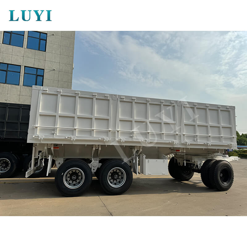 Il rimorchio con ribaltabile laterale per trattore per trasporto merci a 3 assi da 40 tonnellate LUYI, originario dello Shandong, in Cina, è un rimorchio per camion di tipo full-rimorchio appositamente progettato per il trasporto di sabbia e ghiaia. Il corpo del rimorchio è realizzato in acciaio ad alta resistenza, abbinato a configurazioni opzionali a 2-4 assi e sospensioni meccaniche/pneumatiche. È adattato ai pneumatici 12R22.5, garantendo un carico stabile e una forte passabilità, con un carico utile massimo effettivo di oltre 30.000 kg, soddisfacendo facilmente i requisiti di carico pesante.