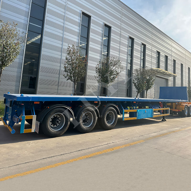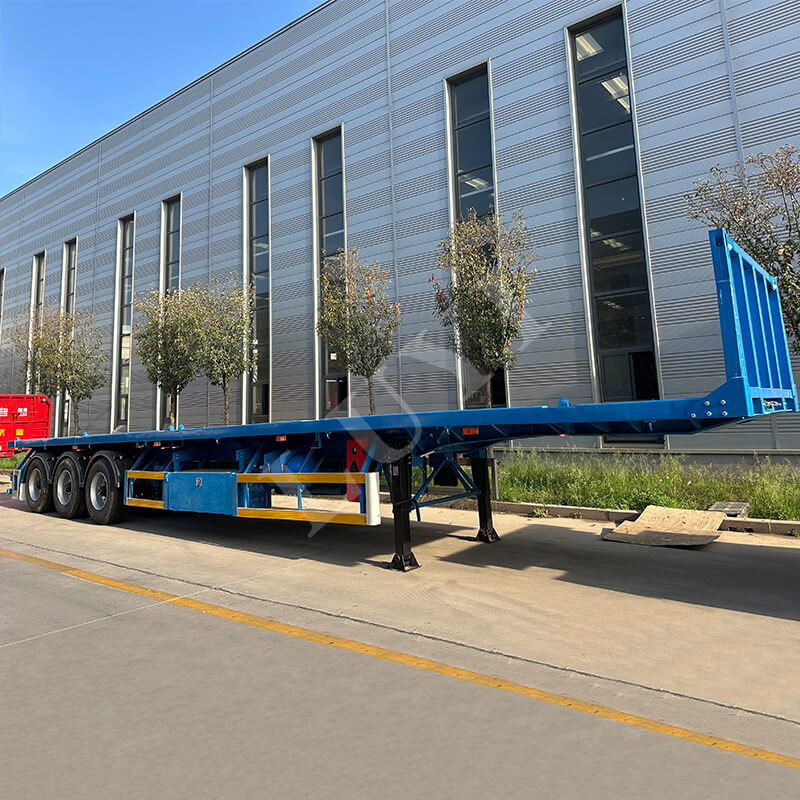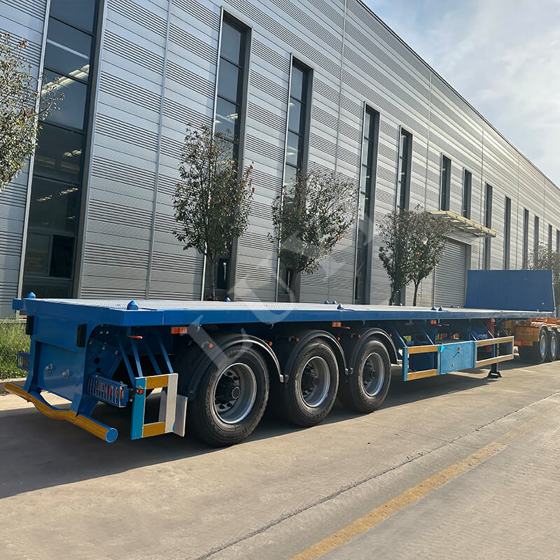 Il semirimorchio pianale a 3 assi da 40 tonnellate è un semirimorchio di nuova conformità realizzato in acciaio ad alta resistenza, dotato di 12 pneumatici e sospensioni affidabili, con una capacità di carico di 40 tonnellate adatto al trasporto di carichi pesanti.