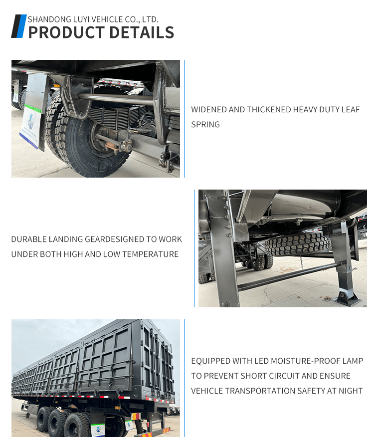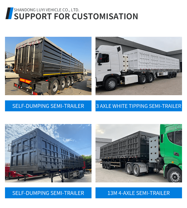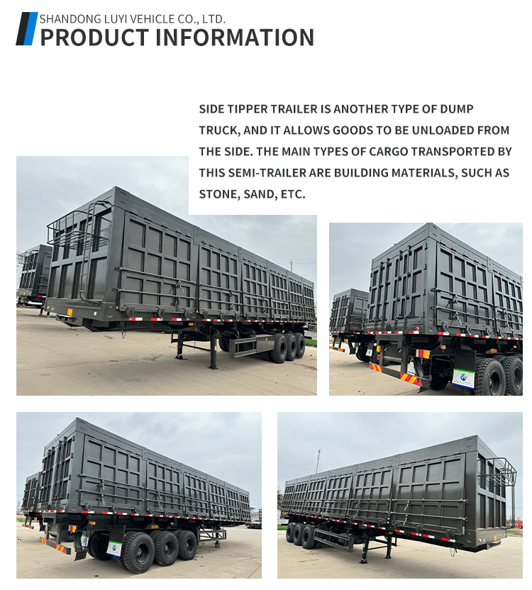 Questo semirimorchio con ribaltabile laterale a 3 assi da 40 tonnellate della LUYI è una soluzione ad alte prestazioni per il trasporto pesante. Originario dello Shandong, in Cina, è caratterizzato da una struttura nuovissima con acciaio di prima qualità, che garantisce resistenza per resistere a condizioni di trasporto difficili.