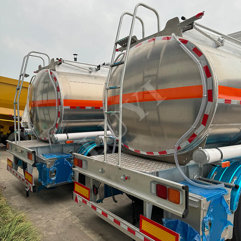 Il semirimorchio con serbatoio dell'olio in lega di alluminio a 3 assi da 45.000 litri è un'efficiente attrezzatura per semirimorchio appositamente progettata per il trasporto di oli finiti come diesel, benzina e cherosene. È adatto per scenari come il trasporto in uscita delle raffinerie di petrolio e la distribuzione delle stazioni di servizio. Il corpo del serbatoio è realizzato in materiale in lega di alluminio di alta qualità, più leggero del tradizionale acciaio al carbonio. Ciò può ridurre il peso proprio dell'intero veicolo e aumentare il carico effettivo. Allo stesso tempo, ha un'eccellente resistenza alla corrosione dell'olio, impedendo che la reazione tra i prodotti petroliferi e il corpo del serbatoio ne comprometta la qualità. L'ampia capacità di 45.000 litri può ridurre il numero di viaggi di trasporto e migliorare significativamente l'efficienza logistica.