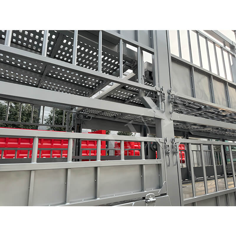 Costruito con materiale in alluminio/lega, il rimorchio è leggero ma resistente, con un carico utile massimo effettivo di oltre 30.000 kg per soddisfare facilmente le esigenze di carico pesante. Per gli assali potete scegliere marchi di alta qualità come FUWA, BPW e CIMC da 13/16 tonnellate. Si abbina a pneumatici di varie specifiche come 11.00r20, 12r22.5, 315 e 385, mentre il sistema di sospensioni offre due opzioni: sospensione meccanica e sospensione pneumatica, garantendo una guida stabile per diverse condizioni stradali. Il colore può essere personalizzato in base alle esigenze del cliente e viene fornito con un servizio post-vendita di 1 anno, soddisfacendo pienamente gli scenari di trasporto e le esigenze personalizzate, rendendolo la scelta ideale per il trasporto di bestiame e merci alla rinfusa.