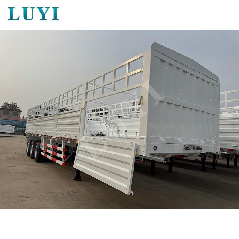 Realizzato principalmente in acciaio di alta qualità, il rimorchio ha una struttura solida e durevole. Il suo carico effettivo massimo raggiunge le 100 tonnellate e la capacità di carico regolare varia da 80 a 100 tonnellate. Con dimensioni di 1250025002000 mm, è dotato di 3 assi dei marchi FUWA o BPW e puoi scegliere in modo flessibile sospensioni meccaniche o sospensioni pneumatiche per adattarti alle diverse condizioni stradali. Il perno offre opzioni JOST da 2 pollici (50 mm) o 3,5 pollici (90 mm), le gambe di supporto hanno specifiche standard da 28 tonnellate e gli pneumatici possono essere modelli 12R22.5, 12.00R20 o 11R22.5. Ha funzioni complete, in grado di trasportare animali, merci generali e contenitori, e il suo colore può anche essere personalizzato secondo necessità, fornendo una soluzione affidabile per vari scenari di trasporto.