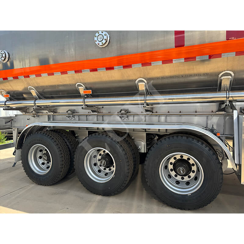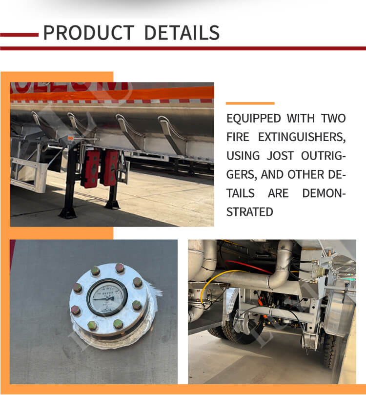 Questo semirimorchio è dotato di assi LUYI 4 e il suo sistema di sospensione offre opzioni di sospensione meccanica o sospensione pneumatica. Abbinato a pneumatici 12R22.5, garantisce una guida stabile e affidabile. Le gambe di supporto sono della classe standard da 28 tonnellate e il perno è disponibile in 2 pollici (50 mm) o 3,5 pollici (90 mm), garantendo una forte adattabilità. Il suo colore è personalizzabile in base alle esigenze del cliente, unendo praticità e personalizzazione, rendendolo la scelta ideale nel settore del trasporto carburanti.