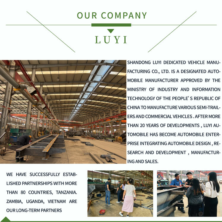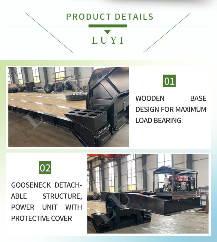 Prodotto da Luyi Vehicle nello Shandong, in Cina, il semirimorchio ribassato a collo di cigno staccabile a 3 assi è una soluzione affidabile per il trasporto pesante con un carico utile massimo di 100 tonnellate. Misura 15.000×3.000×1.800 mm, adattandosi perfettamente alle esigenze delle applicazioni per rimorchi per autocarri.