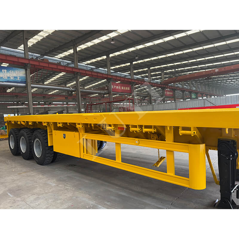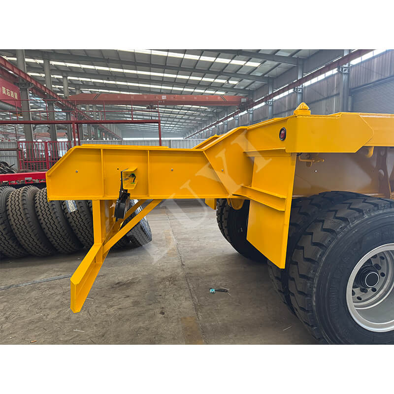 L'intero corpo è realizzato in acciaio di alta qualità, caratterizzato da una struttura robusta e durevole con forte resistenza all'usura e alla deformazione, in grado di adattarsi a lungo ad ambienti di trasporto complessi. Il veicolo è dotato di 3 assi del marchio da 13 tonnellate, abbinati a pneumatici con specifica 12R22.5 e sospensioni meccaniche, garantendo un'eccellente stabilità di guida e una guida fluida anche su diverse condizioni stradali. Gli stabilizzatori standard da 28 tonnellate forniscono un supporto stabile per le operazioni di carico e scarico e il perno di articolazione offre due opzioni: 2 pollici (50 mm) e 3,5 pollici (90 mm), compatibili con la maggior parte dei trattori. Inoltre, il colore può essere personalizzato in base alle esigenze del cliente, soddisfacendo pienamente le preferenze di utilizzo personalizzate e facilitando un trasporto efficiente.