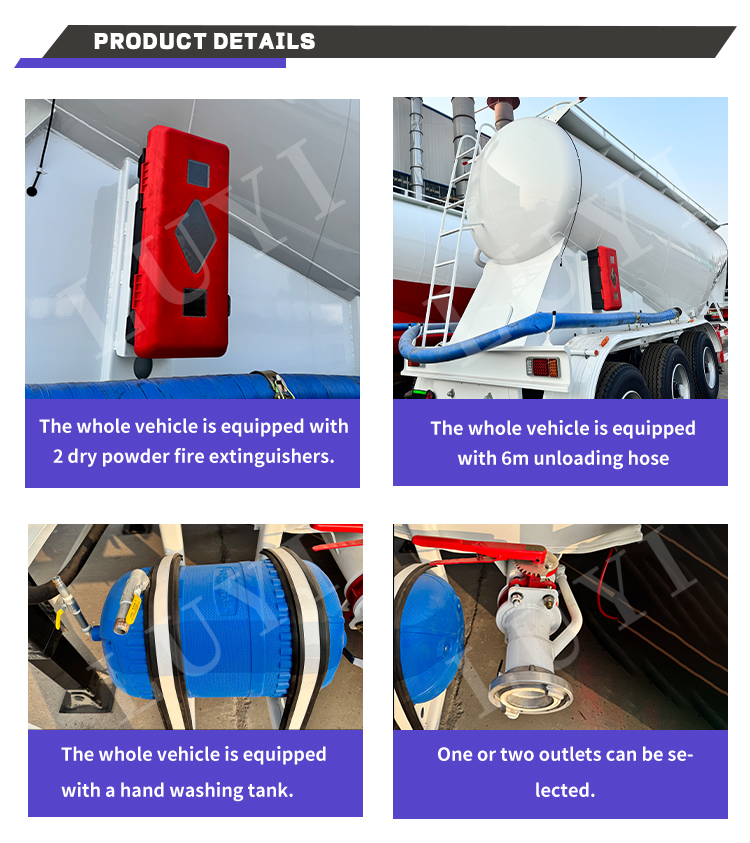 Il semirimorchio cisterna per polvere a 3 assi da 30 cubi del marchio LUYI, proveniente da una base di produzione di alta qualità nello Shandong, in Cina, è fatto su misura per gli scenari di trasporto di farina sfusa secca. L'intero veicolo è realizzato in acciaio al carbonio ad alta resistenza, con la trave principale in acciaio standard Q345B/ST52-3, che combina durata e stabilità portante. Il design delle dimensioni scientifiche di 12000 mm*2500 mm*3980 mm è adatto a vari scenari di trasporto.