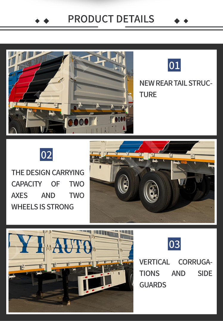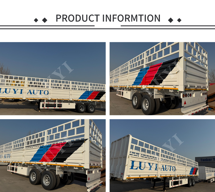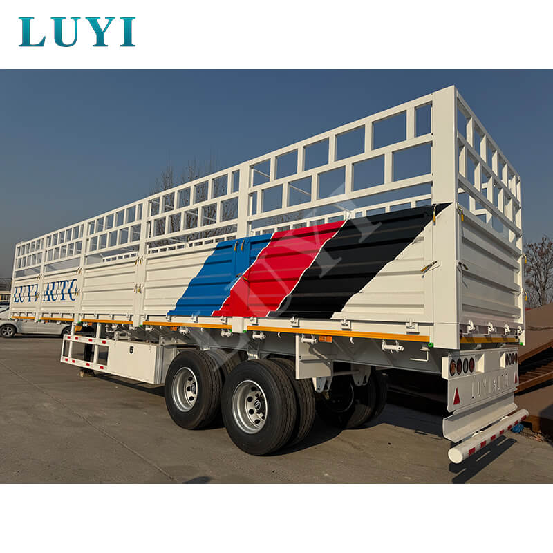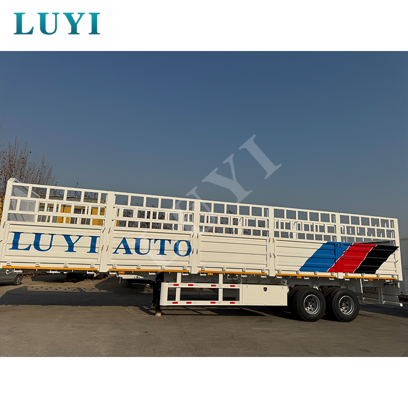Il semirimorchio con sponde laterali a recinzione alta a 2 assi di nuova concezione di LUYI offre doppie capacità di carico di 30 e 60 tonnellate, soddisfacendo perfettamente le esigenze di trasporto medio e pesante come materiali da costruzione, attrezzature industriali e prodotti agricoli. L'alta struttura della recinzione previene efficacemente la fuoriuscita del carico durante il trasporto, mentre le funzionalità personalizzabili ti consentono di modificare l'altezza della recinzione, i materiali del trasporto e i pavimenti antiscivolo per soddisfare le tue esigenze. Questo rimorchio versatile e su misura è ora disponibile per la vendita, ideale sia per le aziende logistiche che per gli operatori del trasporto merci.