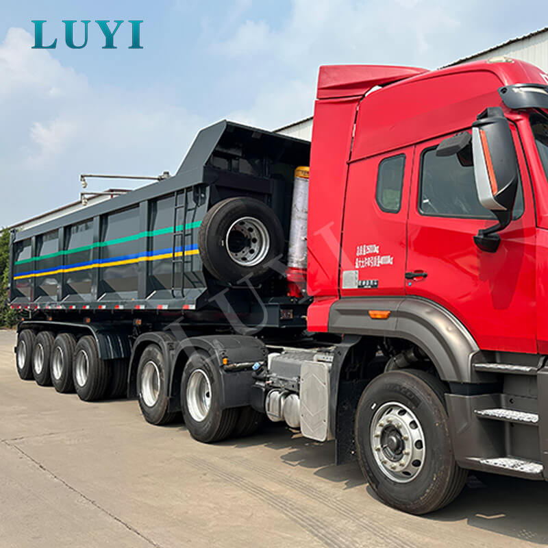 Il semirimorchio con cassone ribaltabile posteriore idraulico a forma di U a 4 assi da 100 tonnellate di LUYI, originario dello Shandong, in Cina, è uno strumento dedicato per il trasporto di merci sfuse come sabbia, ghiaia e carbone. Costruito con acciaio al carbonio di alta qualità, ha dimensioni precise di 12050x2550x3600MM e una capacità di carico massima di 100 tonnellate, le cui potenti prestazioni soddisfano le esigenze del trasporto pesante.