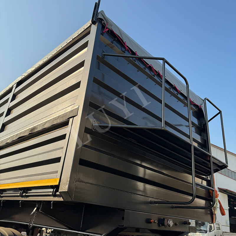 Originario della provincia di Shandong, Cina, il semirimorchio con cassone ribaltabile LUYI a 4 assi da 40 piedi e 80 tonnellate è un semirimorchio con cassone ribaltabile ad alte prestazioni appositamente progettato per il trasporto di sabbia, ghiaia e carbone. Il cassone del rimorchio è realizzato in acciaio al carbonio di alta qualità, con dimensioni di 9500×2500×3600 mm. Ha una struttura robusta resistente ai carichi pesanti, con un carico utile massimo effettivo fino a 80 tonnellate, consentendo un carico efficiente di varie merci sfuse.