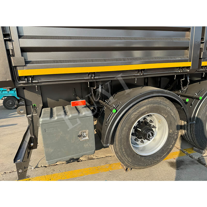 Realizzato in acciaio al carbonio di alta qualità, il rimorchio vanta una struttura resistente con dimensioni di 9500x2500x3600MM. È dotato di una configurazione a 4 assi, abbinata a una sospensione meccanica e molle a balestra da 90 (L) mm × 13 (Spessore) mm × 10 (Strato), garantendo un carico stabile anche in condizioni difficili. Il carico utile massimo raggiunge 80 tonnellate, mentre le opzioni di pneumatici (12R22.5/12.00R20/11R22.5) e il carrello di atterraggio JOST Standard da 28 tonnellate migliorano l'adattabilità e la sicurezza. Il colore è personalizzabile in base alle preferenze del cliente, rendendolo una scelta affidabile e versatile per il trasporto di materiali sfusi.