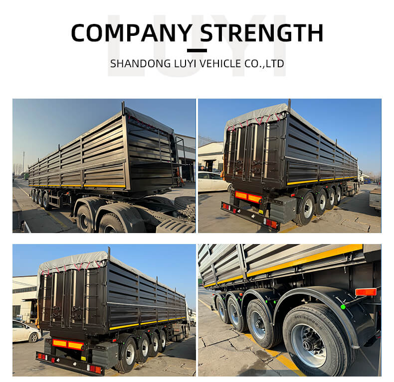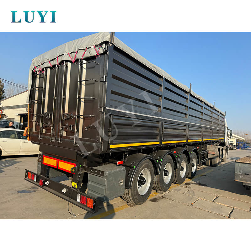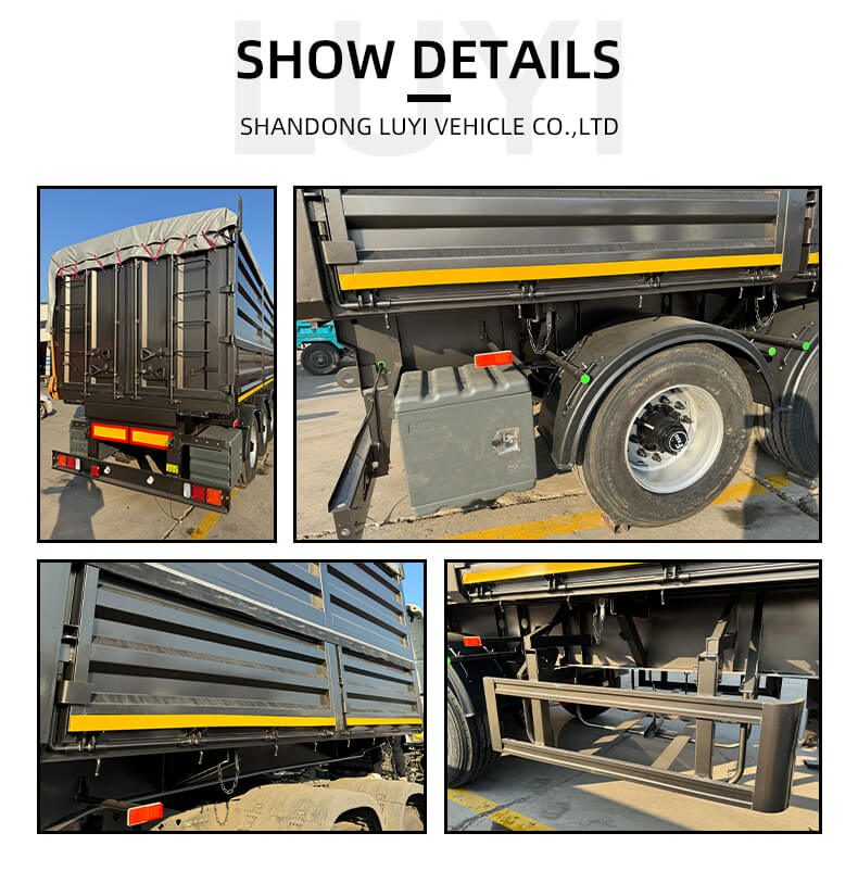Questo semirimorchio ribaltabile a 4 assi da 40 piedi del marchio LUYI è un veicolo da trasporto ad alte prestazioni su misura per il trasporto di sabbia, pietra e carbone. Originario dello Shandong, in Cina, combina una struttura robusta con funzionalità pratiche per soddisfare le esigenze di trasporto pesante.