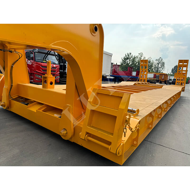 Questo semirimorchio a pianale ribassato staccabile a collo di cigno da 60/80 tonnellate a 4 assi è un rimorchio per camion professionale prodotto nella provincia di Shandong, in Cina. Realizzato in acciaio di alta qualità, ha eccellenti prestazioni di carico, con un carico utile massimo effettivo di oltre 30.000 chilogrammi e un intervallo di carico di 80-120 tonnellate, appositamente progettato per il trasporto di attrezzature pesanti.