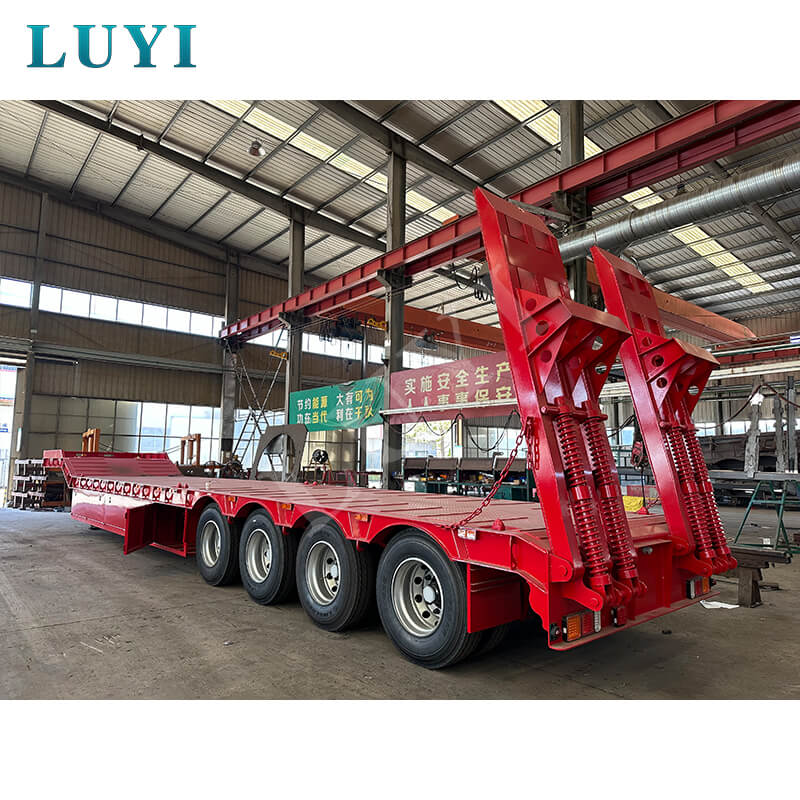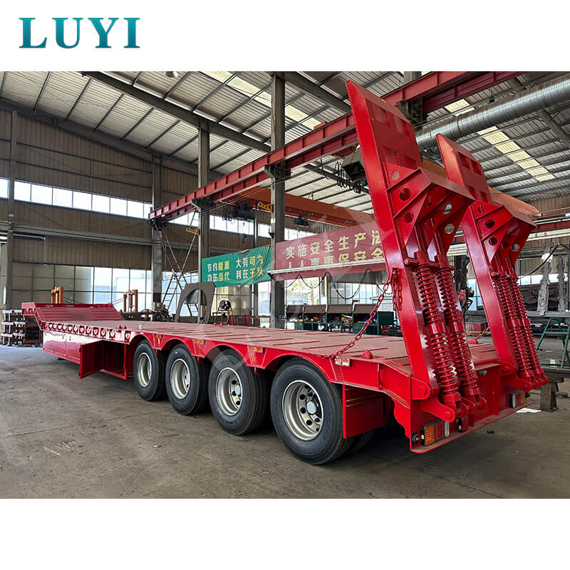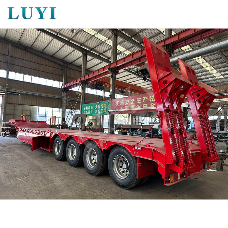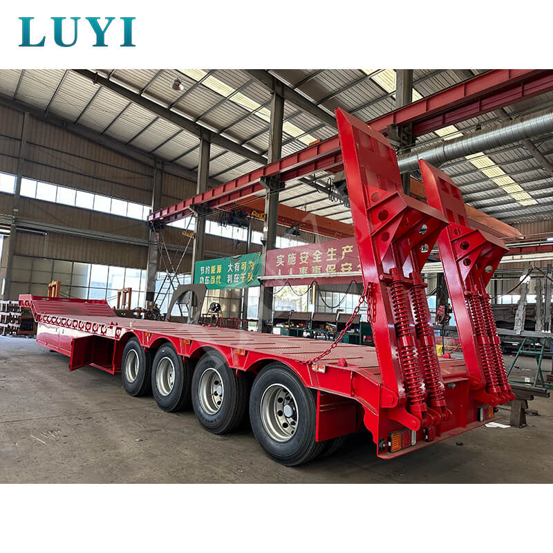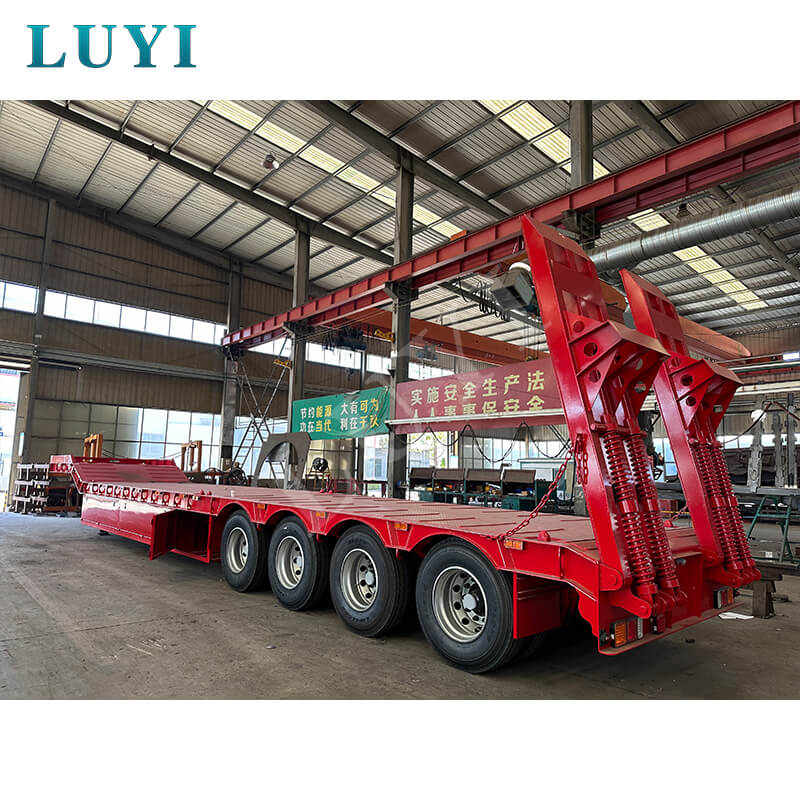 Il semirimorchio Lowboy Luyi a 4 assi da 60 tonnellate, originario della provincia di Shandong, Cina, è un rimorchio per autocarri ad alte prestazioni progettato specificamente per il trasporto di attrezzature pesanti, merci containerizzate e macchinari. Dotato di una scala idraulica, consente un carico e scarico comodo ed efficiente.