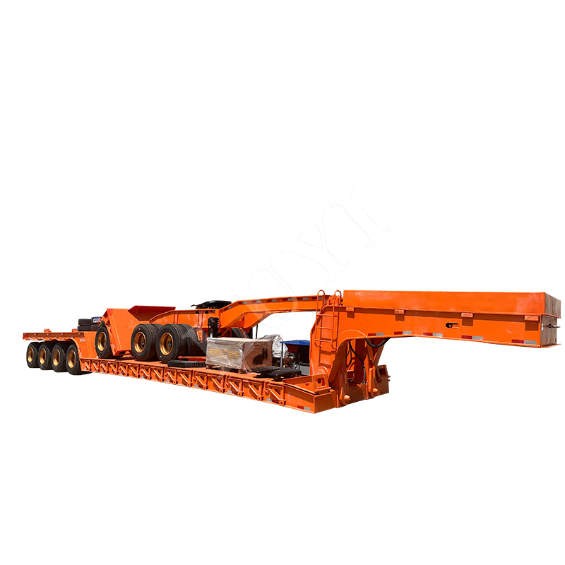 Il semirimorchio ribassato a collo di cigno staccabile a 4 assi di LUYI VEHICLE, proveniente dallo Shandong, Cina, è una soluzione affidabile per il trasporto pesante con un carico utile massimo di 80 tonnellate. Misura 18.000×2.500×1.500 mm, adattandosi perfettamente alle esigenze applicative del rimorchio del camion.
