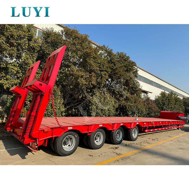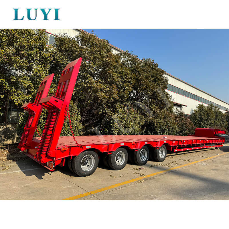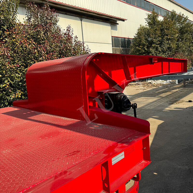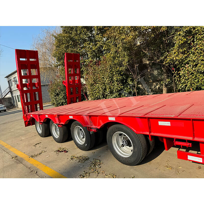 Il semirimorchio a pianale ribassato a collo di cigno a 4 assi è un semirimorchio professionale appositamente progettato per il trasporto di attrezzature di ingegneria pesante e macchinari di grandi dimensioni, adatto per infrastrutture, miniere, costruzioni ingegneristiche e altri scenari. La struttura a collo di cigno riduce efficacemente l'altezza della piattaforma di carico e, combinata con il design a pianale ribassato, può trasportare facilmente attrezzature ultra larghe e ultra alte come escavatori, pale caricatrici e rulli compressori, evitando problemi di traffico causati da limiti di altezza durante il trasporto; la disposizione a 4 assi combinata con un corpo in acciaio ad alta resistenza offre un'elevata capacità di carico, che può sostenere stabilmente il peso di attrezzature pesanti e ridurre il rischio di deformazione del corpo durante la guida.