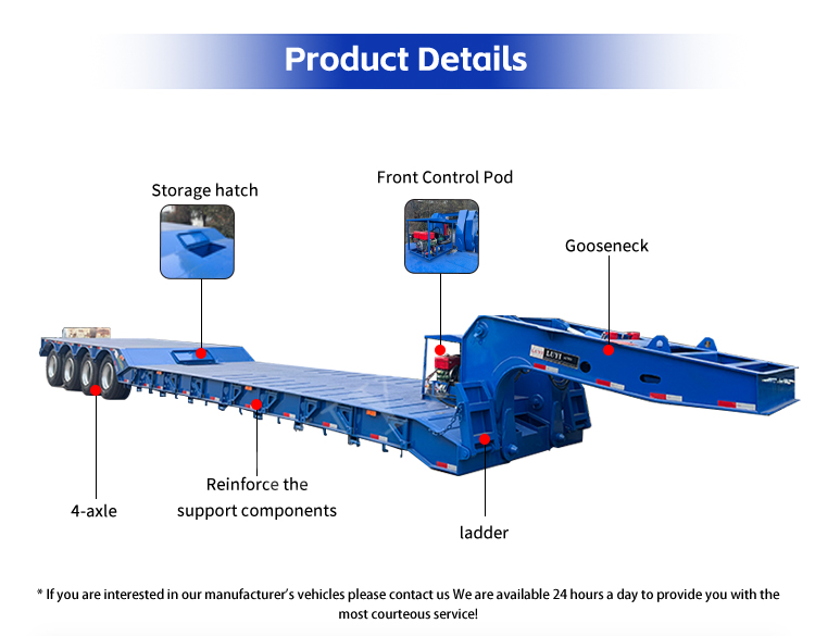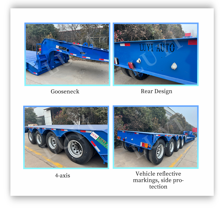 Il design a collo di cigno facilita le operazioni di carico e scarico, consentendo ai macchinari pesanti di salire sul rimorchio senza apparecchiature ausiliarie aggiuntive. Ideale per il trasporto di macchine edili, attrezzature minerarie e prodotti siderurgici di grandi dimensioni, questo semirimorchio bilancia efficienza e sicurezza, rendendolo una scelta affidabile per operazioni logistiche e di ingegneria.