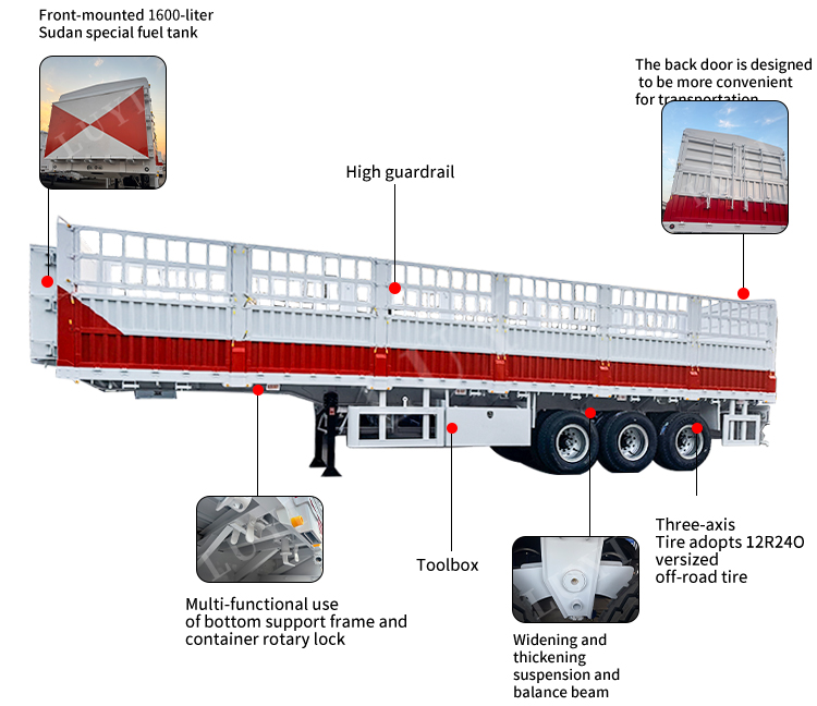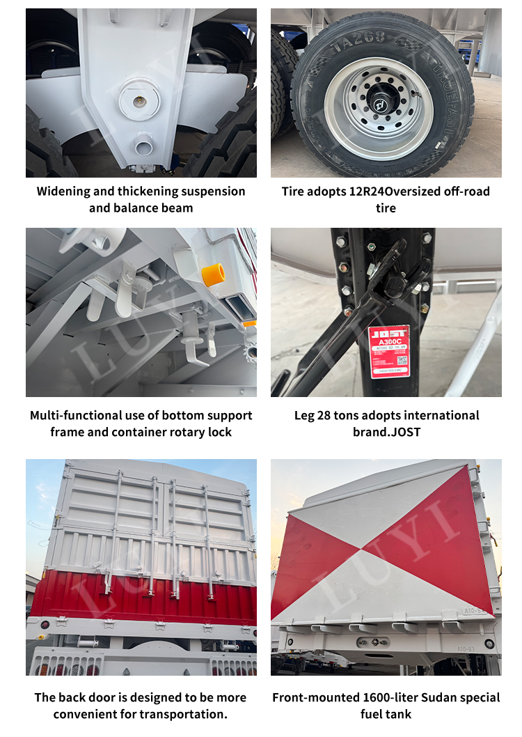 Il rimorchio è dotato di carrello di atterraggio Jost da 28 tonnellate e sistema di frenatura antibloccaggio ABS per una maggiore sicurezza. Possiede numerose certificazioni tra cui ECE, GCC, CE, DOT e ISO/TS16949, che soddisfano gli standard di qualità globali. Non è auto-dumping e supporta opzioni di colore personalizzate. Ideale per il trasporto di carbone, grano, minerali e prodotti agricoli, questo nuovissimo rimorchio è progettato per affrontare le difficili condizioni stradali dell'Asia centrale e dell'Africa, offrendo prestazioni affidabili per flotte logistiche, miniere e aziende agricole.