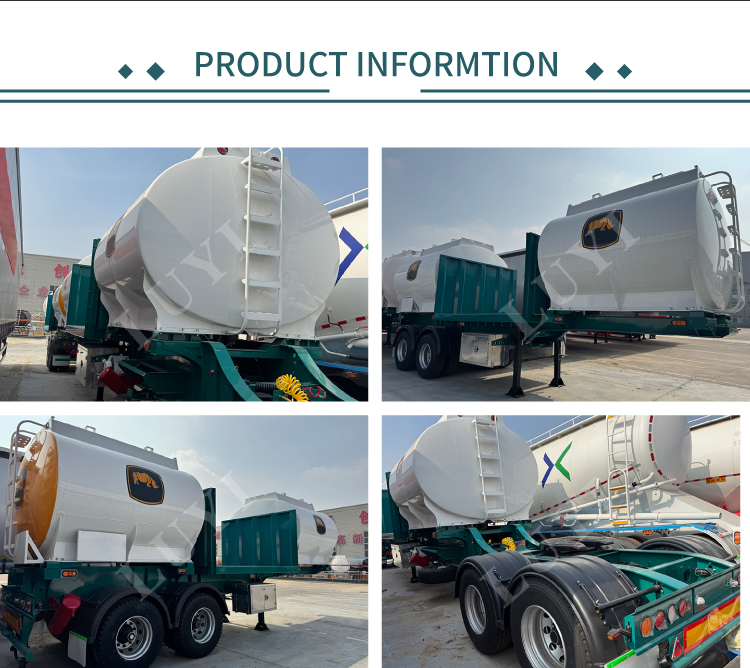 Ha configurazioni flessibili con 2-6 assi opzionali, dotati di assi FUWA/BPW/BAIPING da 13/16 tonnellate. Sono disponibili sospensioni meccaniche o pneumatiche per diverse condizioni stradali. Le parti standard includono carrello di atterraggio da 28 tonnellate, sistema frenante WABCO e perno di articolazione JOST da 2,0/3,5 pollici. Molteplici specifiche di pneumatici e cerchioni sono opzionali, tutti gli accessori principali sono prodotti di alta qualità. Con una struttura ragionevole e uno scarico efficiente, è una scelta ideale ed economicamente vantaggiosa per il trasporto di cemento sfuso, ceneri volanti e altre polveri.