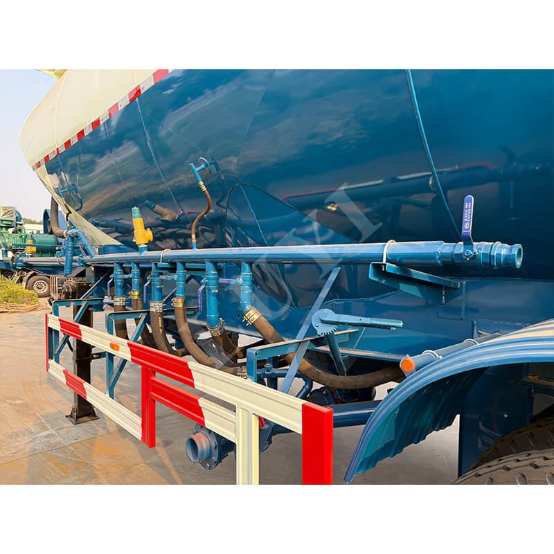 Il semirimorchio cisterna per cemento sfuso Luyi da 48 metri cubi di tipo V (noto anche come camion cisterna per polvere), originario della provincia di Shandong, Cina, è un semirimorchio di alta qualità appositamente progettato per il trasporto di polvere di cemento sfuso. L'intero veicolo è realizzato in acciaio, con acciaio a canale 16# utilizzato per le travi laterali, garantendo una struttura robusta e durevole. Ha una capacità di carico effettiva massima di 48 metri cubi, che può soddisfare in modo efficiente le esigenze di trasporto di grande capacità di cemento sfuso.
