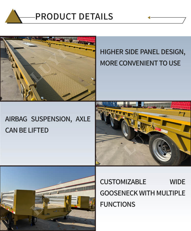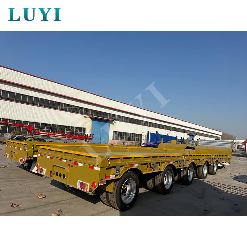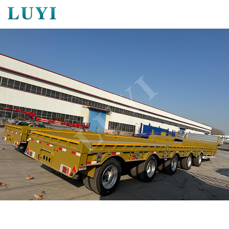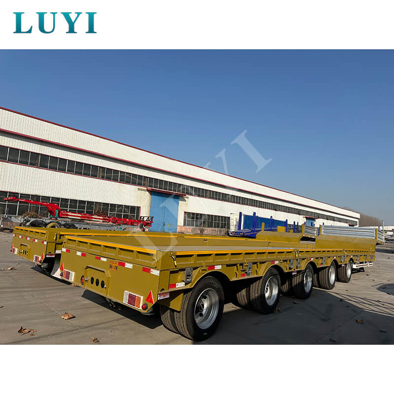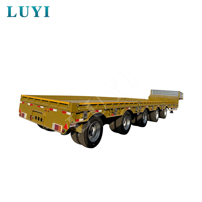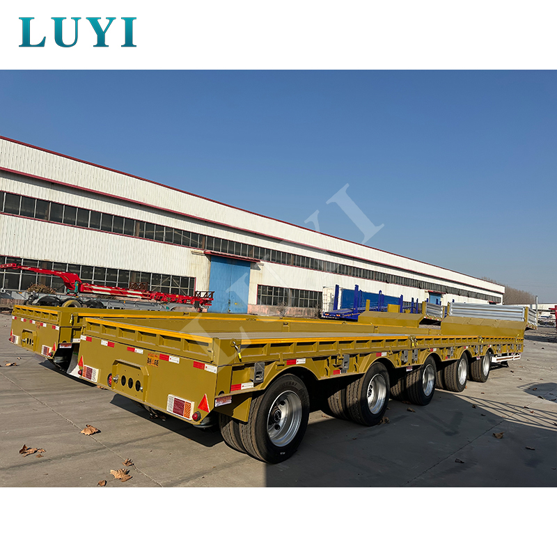 Il semirimorchio a pianale ribassato LUYI a 5 assi da 16 m e 80 tonnellate con sospensione pneumatica, un semirimorchio premium dello Shandong, in Cina, è progettato per il trasporto di attrezzature pesanti. È realizzato in acciaio ad alta resistenza, con una dimensione standard di 16.000×3.500×1.800 mm e una capacità di carico di 60-200 tonnellate, in grado di movimentare facilmente carichi pesanti come macchinari di grandi dimensioni.