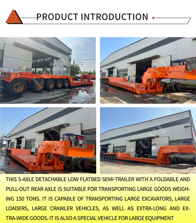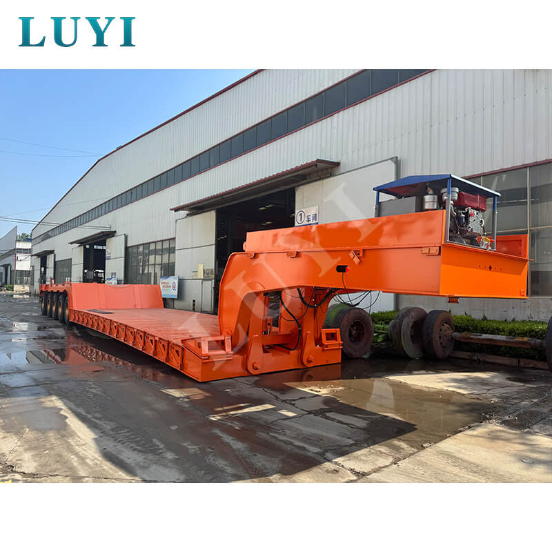 Il semirimorchio ribassato a collo di cigno staccabile a 5 assi LUYI, prodotto nello Shandong, in Cina, è un veicolo da trasporto pesante ad alte prestazioni su misura per le esigenze di carico ultra pesante.