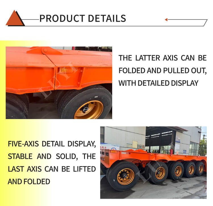 Realizzato in acciaio di alta qualità, ha una dimensione di 17.500×3.000×1.830 mm e un carico utile massimo di 100 tonnellate, gestendo facilmente il trasporto di attrezzature grandi e pesanti. È dotato di 5 assi, disponibili nei marchi FUWA, BPW o LUYI, abbinati a pneumatici 12R22.5. Sono disponibili sia le sospensioni pneumatiche che quelle meccaniche, che garantiscono una guida stabile e un'efficace protezione del carico anche in caso di carichi pesanti.