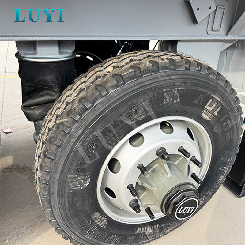 Sistema di sospensione per carichi pesanti: Impiega una robusta sospensione meccanica a balestra, progettata specificamente per distribuire uniformemente il carico massiccio su tutti e cinque gli assi, garantendo stabilità su terreni irregolari e migliorando la durata.