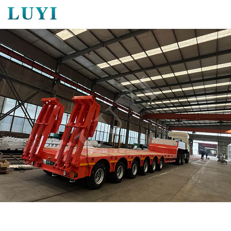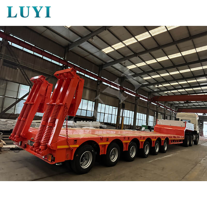 Il rimorchio a pianale ribassato telescopico a 6 assi Luyi, originariamente prodotto nella provincia di Shandong, in Cina, è un nuovissimo semirimorchio appositamente progettato per il trasporto di carichi pesanti. È disponibile con specifiche a collo d'oca da 80 tonnellate, 100 tonnellate e 120 tonnellate, con un carico massimo effettivo di oltre 30.000 kg, adatto per scenari di rimorchi per camion.