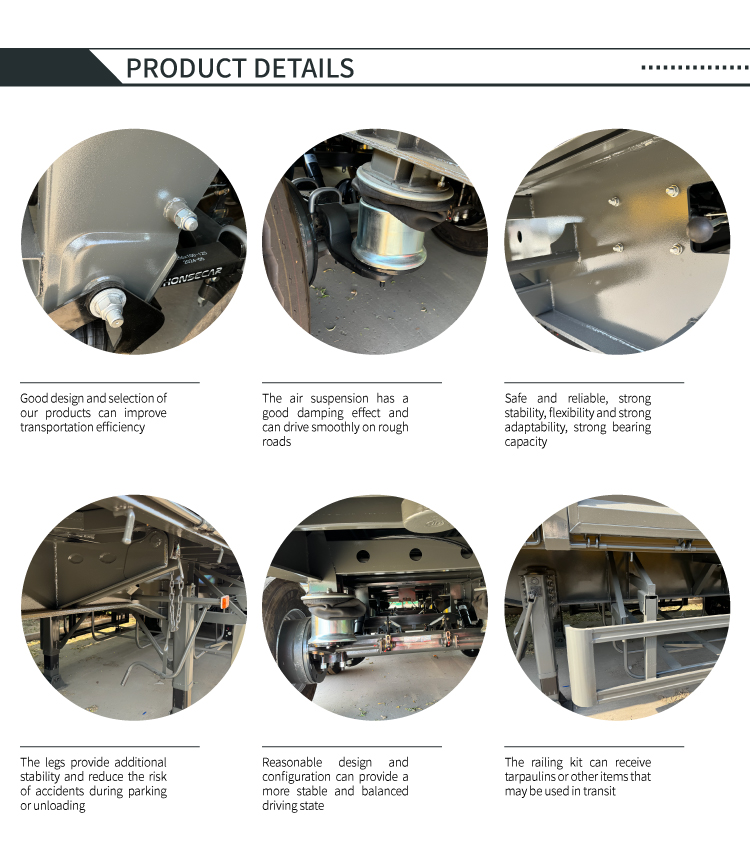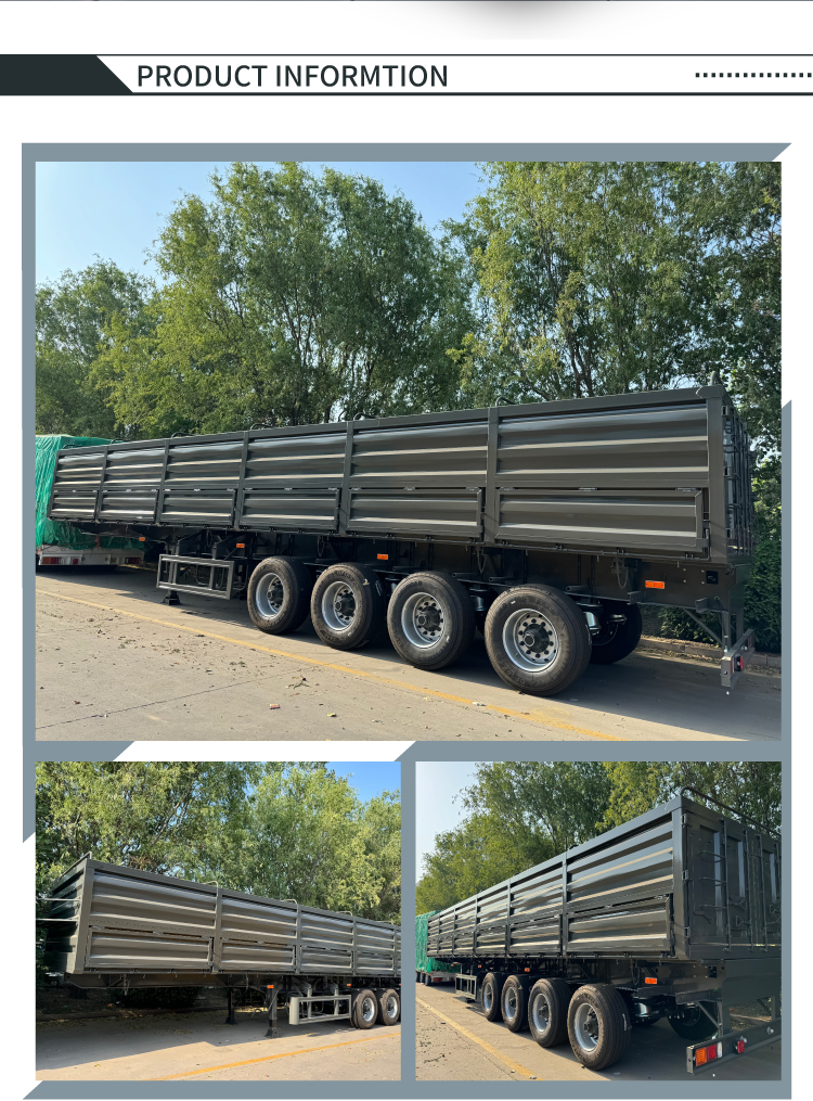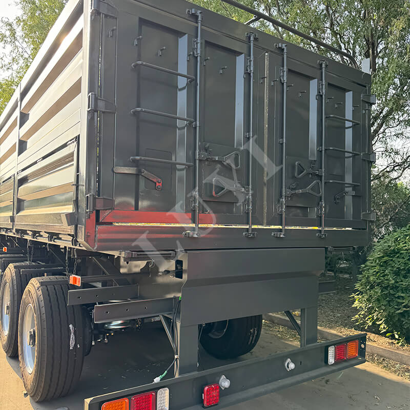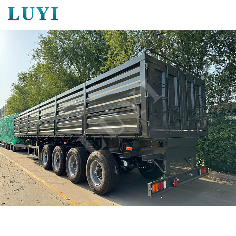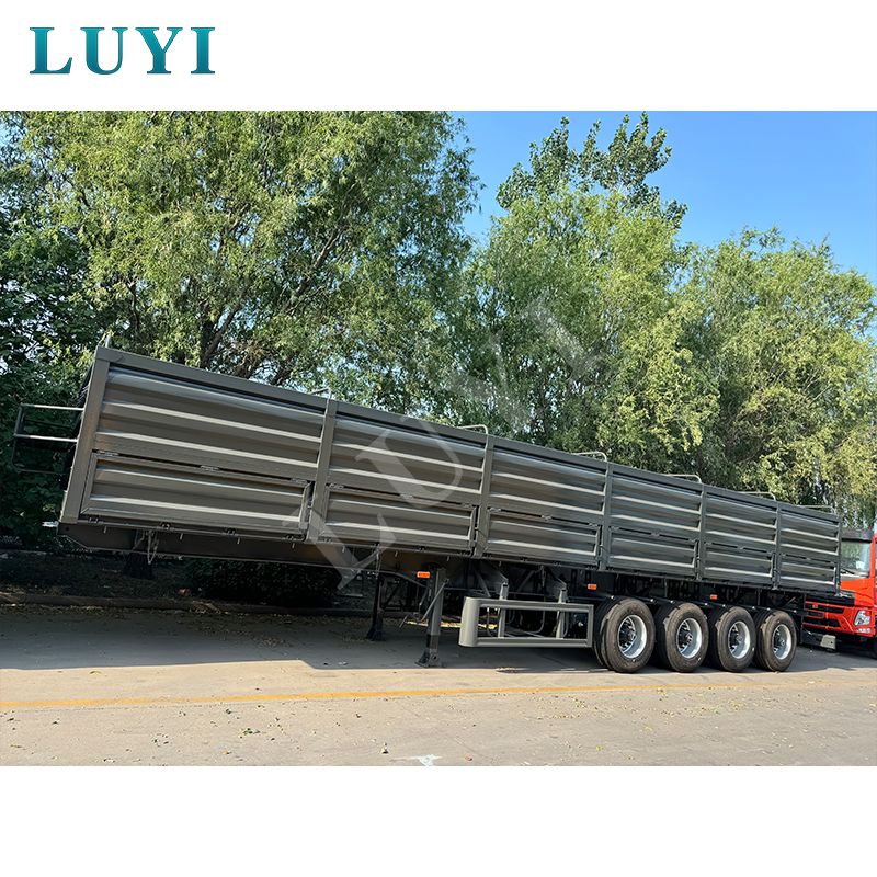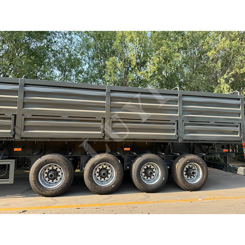 Il semirimorchio con ribaltabile laterale a 4 assi LUYI da 60 tonnellate è personalizzato per il trasporto di carichi pesanti alla rinfusa in scenari come miniere e progetti infrastrutturali. Adotta una struttura di scarico idraulica a ribaltamento laterale, che consente uno scarico rapido in spazi ristretti e lo svuotamento completo del compartimento in pochi minuti, migliorando notevolmente l'efficienza del turnover delle merci. I componenti portanti principali sono realizzati in acciaio durevole ad alta resistenza, abbinato a un design a 4 assi e airbag a sospensione pneumatica. Questo non solo distribuisce la pressione di carichi pesanti da 60 tonnellate e soddisfa i requisiti normativi, ma regola anche la durezza dell'assorbimento degli urti in base al carico, riducendo le sobbalzini del carico e l'impatto sulla strada. L'intero veicolo bilancia l'efficienza di scarico, la resistenza ai carichi pesanti e la stabilità di guida, rendendolo una scelta affidabile per il trasporto di merci alla rinfusa pesanti.
