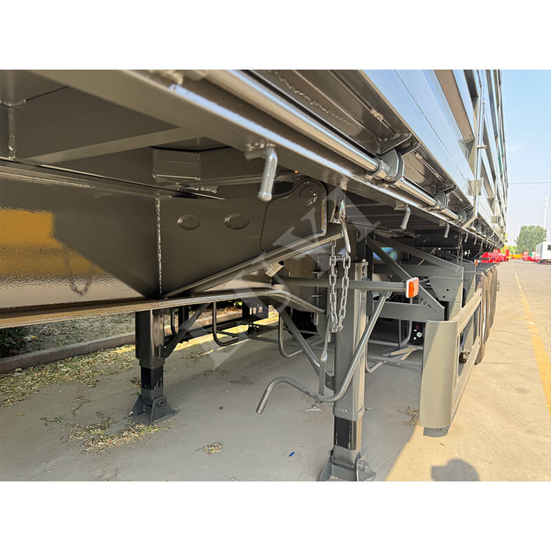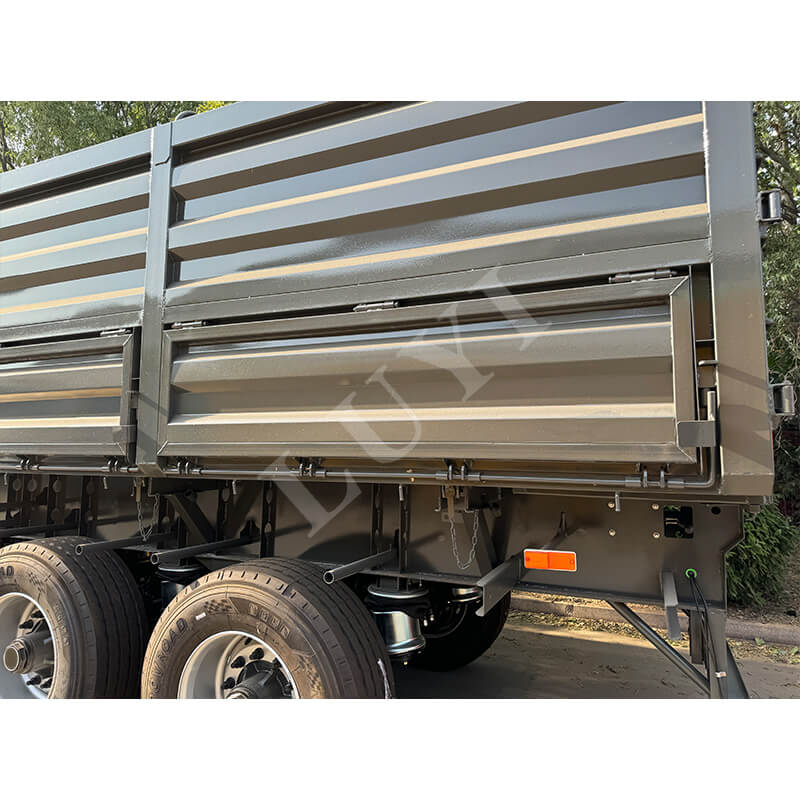 Il semirimorchio con ribaltabile laterale a 4 assi LUYI da 60 tonnellate è personalizzato per il trasporto di carichi pesanti alla rinfusa in scenari come miniere e progetti infrastrutturali. Adotta una struttura di scarico idraulica a ribaltamento laterale, che consente uno scarico rapido in spazi ristretti e lo svuotamento completo del compartimento in pochi minuti, migliorando notevolmente l'efficienza del turnover delle merci. I componenti portanti principali sono realizzati in acciaio durevole ad alta resistenza, abbinato a un design a 4 assi e airbag a sospensione pneumatica. Questo non solo distribuisce la pressione di carichi pesanti da 60 tonnellate e soddisfa i requisiti normativi, ma regola anche la durezza dell'assorbimento degli urti in base al carico, riducendo le sobbalzini del carico e l'impatto sulla strada. L'intero veicolo bilancia l'efficienza di scarico, la resistenza ai carichi pesanti e la stabilità di guida, rendendolo una scelta affidabile per il trasporto di merci alla rinfusa pesanti.