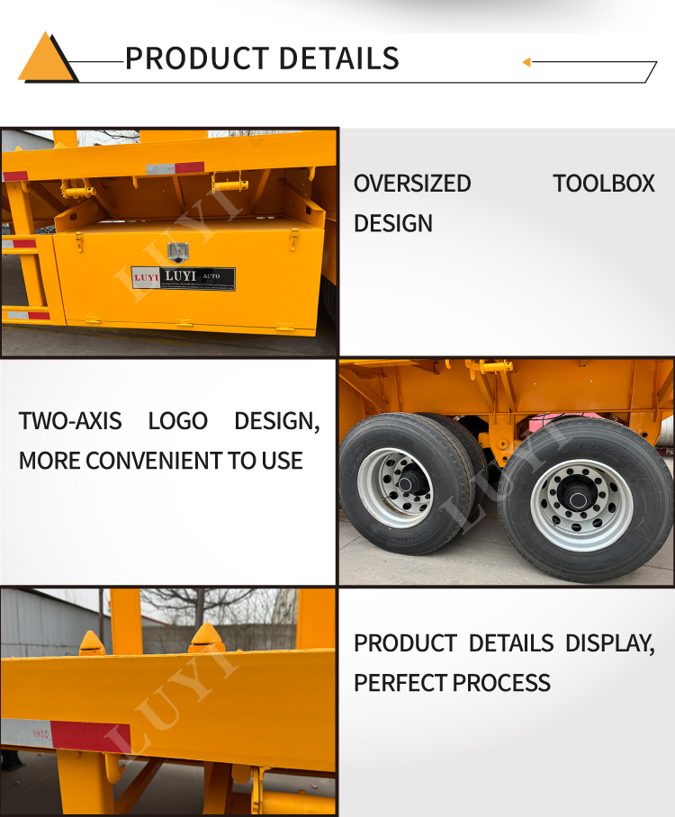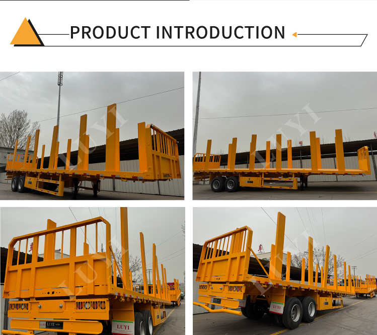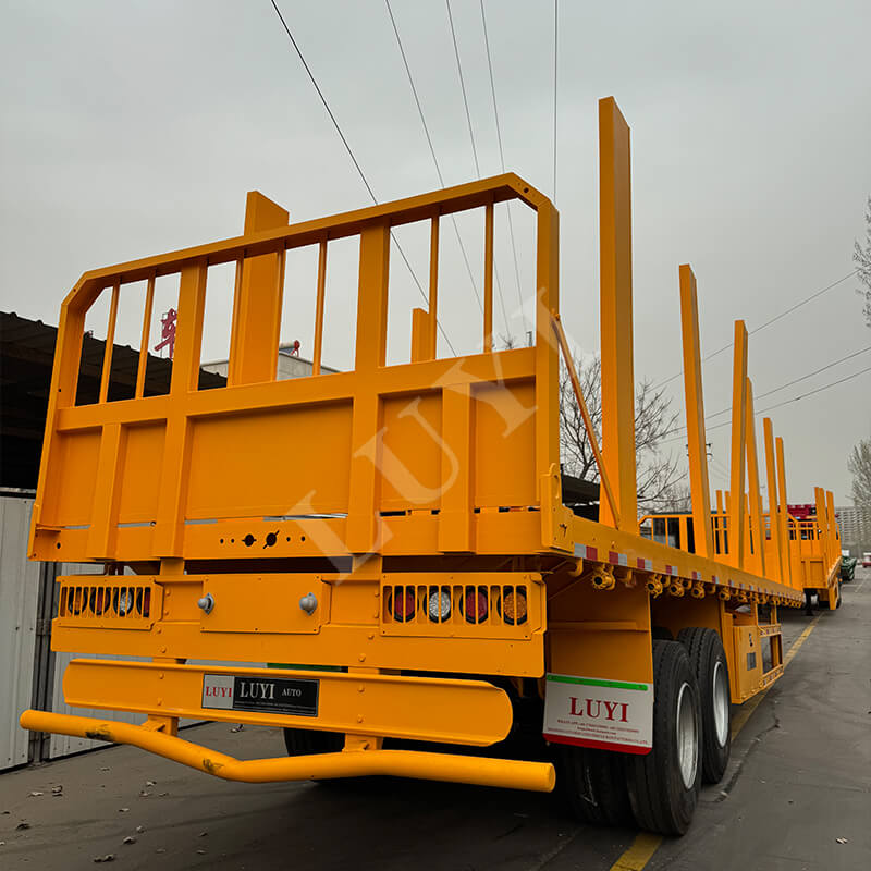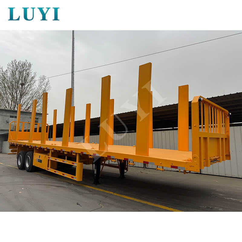 Il rimorchio a pianale a colonna a 2 assi da 40 tonnellate di LUYI è progettato su misura per il trasporto del legno con ampie opzioni di personalizzazione. Regola l'altezza della credenza (30-80 cm disponibili) per adattarla a tronchi, legname o altri prodotti in legno e scegli tra piastre in acciaio striato o piani rivestiti antiscivolo per una migliore presa.