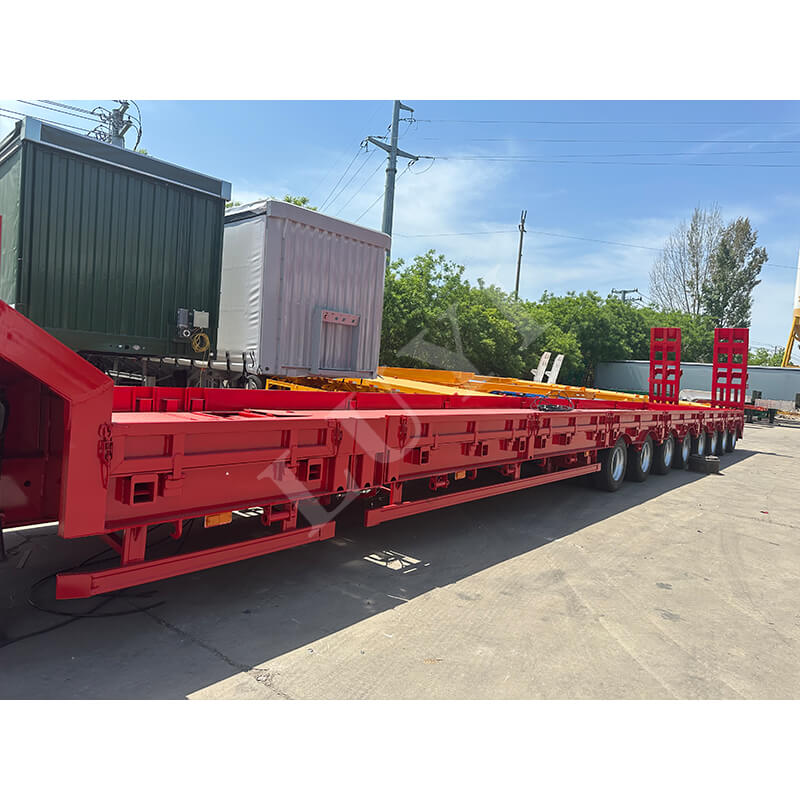 Costruito con acciaio al carbonio o alluminio di alta qualità, bilancia resistenza e requisiti di leggerezza, vantando un carico utile massimo di 100 tonnellate per gestire facilmente vari scenari di trasporto di attrezzature pesanti. Dotato di un design a 8 assi, offre assali opzionali di marca Fuwa o BPW, abbinati a sospensioni meccaniche o sistemi di sospensione pneumatica, garantendo stabilità di guida e sicurezza del carico. Sono disponibili tre specifiche di pneumatici: 12R22.5, 12.00R20 e 11R22.5, adatti a diverse condizioni stradali.