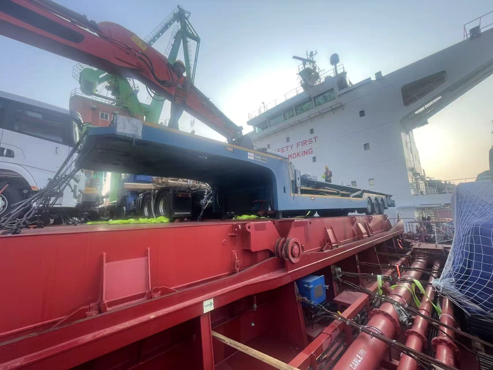 Recentemente, tresemirimorchi pianalisotto la Luyi Automobile Company ha completato l'operazione di carico in un importante porto nazionale e ha ufficialmente intrapreso un viaggio di trasporto all'estero verso il Ghana. I semirimorchi pianali spediti questa volta sono prodotti realizzati su misura da Luyi Automobile per la domanda di trasporto logistico locale in Ghana. L'intero processo, dalla progettazione alla produzione, è incentrato sulla praticità e sulla durata dei semirimorchi a pianale, cercando di rendere ogni semirimorchio a pianale adattabile ai complessi scenari di trasporto in Ghana.