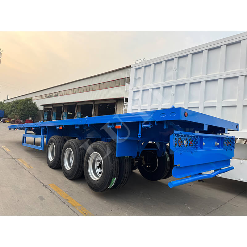 Questo semirimorchio piatto a tre assi con un carico di 60 tonnellate è realizzato con cura per scenari di trasporto pesanti. Utilizza acciaio strutturale di alta qualità per garantire che il corpo abbia resistenza e durata eccellenti e non teme i severi test in condizioni di lavoro complesse.