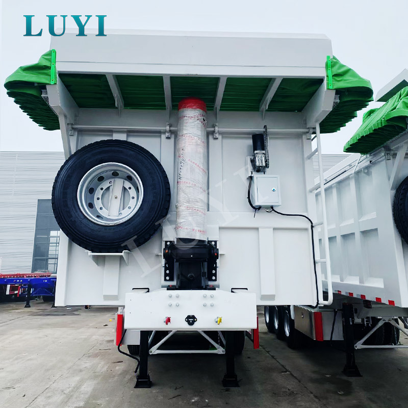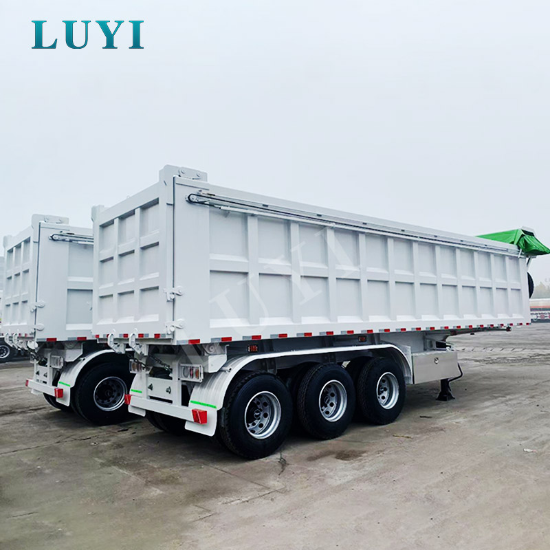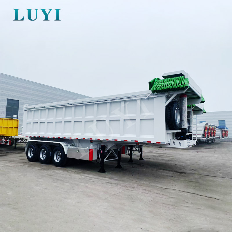 Il semirimorchio con cassone ribaltabile ribaltabile posteriore bianco a 3 assi del marchio LUYI, originario della produzione di alta qualità nello Shandong, in Cina, è un efficiente rimorchio per camion appositamente progettato per il trasporto di carichi pesanti. Il prodotto è realizzato in acciaio ad alta resistenza, caratterizzato da una struttura stabile e durevole. Ha dimensioni di 1300 mm × 2500 mm × 4000 mm e una capacità di carico massima di 100 tonnellate, soddisfacendo facilmente le esigenze di trasporto di varie merci pesanti.